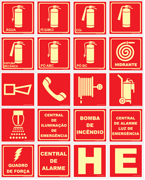 Placa para extintor anti-chamas , em PVC com aplicação de tinta fotoluminescente, segue as normas ABNT.