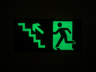 Placa rota de fuga anti-chamas , em PVC com aplicação de tinta fotoluminescente, segue as normas ABNT.